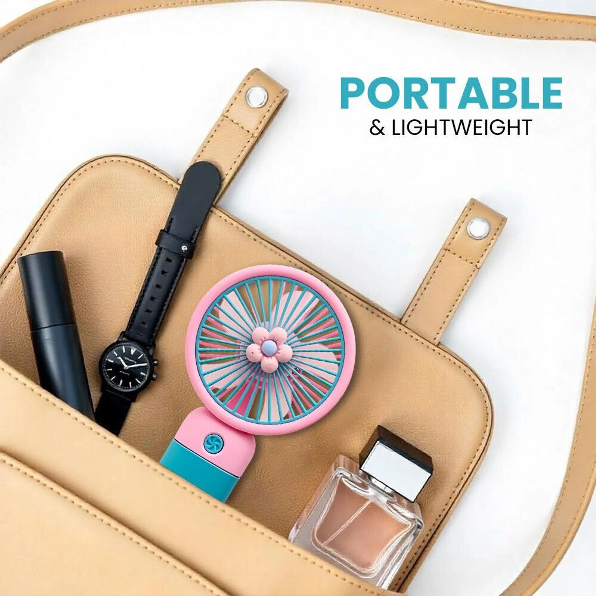 This small portable fan is lightweight and easy to carry, making it ideal for travelling, sports events, outdoor walks, school, and home use. The handheld design allows users to comfortably hold the fan, while the hanging option makes it convenient to use anywhere.